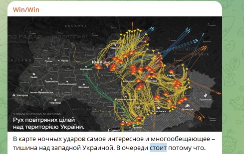 В карте ночных ударов самое интересное и многообещающее – тишина над Западной Украиной. В очереди стоит потому что,