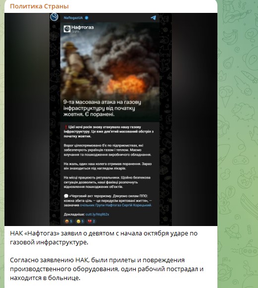 Сегодня был самый массированный за всё время войны удар по нефтегазовой инфраструктуре Украины,
