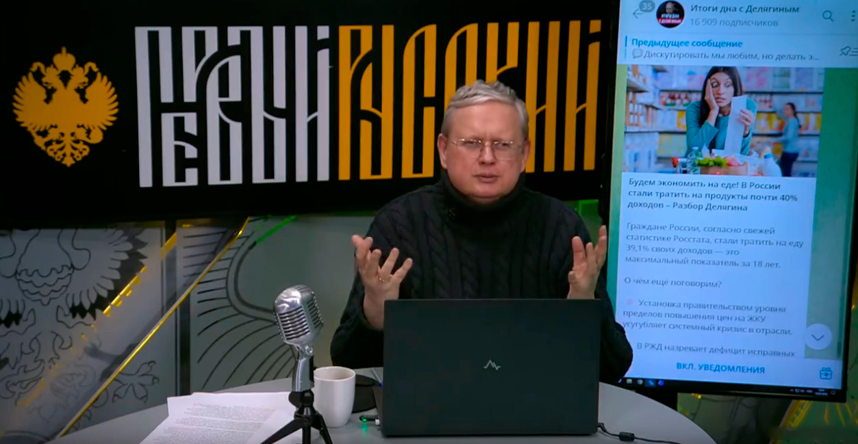39% – это максимальный показатель доли расходов на еду в доходах с 2005 года. Михаил Делягин назвал это очень тревожным критерием.
