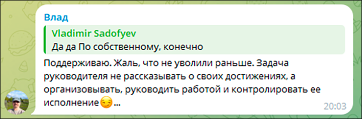 Комментарий пользователя по имени Влад на ТГ-канале экс-мэра Рязани, скриншот страницы