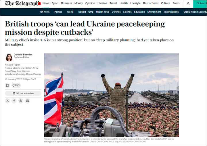 Собственно, ничего нового в таких заявлениях нет. Британская пресса и говорящие головы "греют" тему отправки военного контингента с 2024 года, когда на этом вопросе решил попиариться президент Франции Эммануэль Макрон.