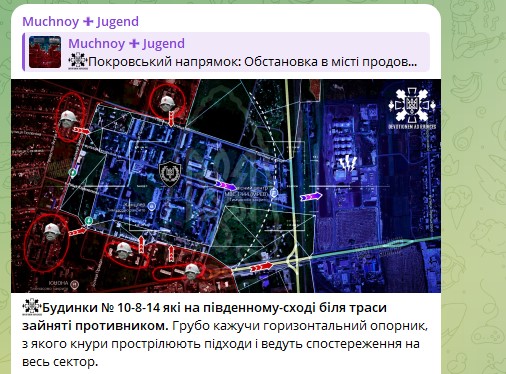 Да, именно туда! Тем самым они выжимают нас с этих высоток и южнее Мирнограда, чтобы сузить фронт и зайти в кольцо, где манёвр и эвакуация будут невозможны. Когда подразделения окажутся в сердце Мирнограда, противник получит возможность блокировать выходы и усилить давление, целью могут стать массовые сдачи в плен, если не хуже,