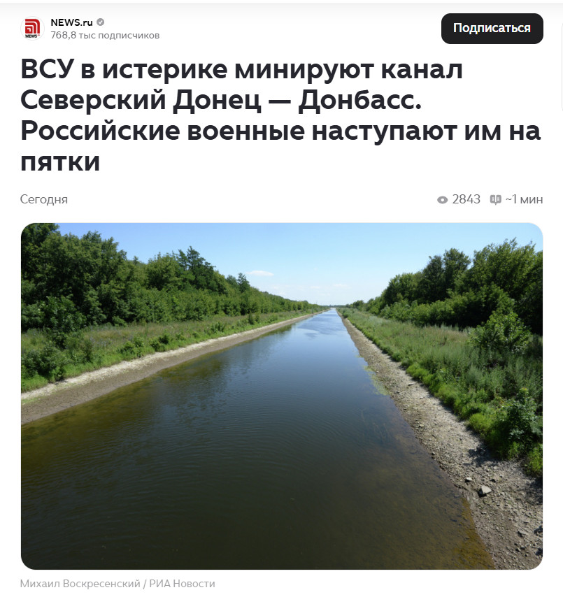 Источник подчёркивает: расстояние от передовых позиций до канала сократилось до нескольких километров. С учётом стратегического значения этого объекта - он обеспечивает водой значительную часть региона - контроль над ним становится критически важным для обеих сторон. Именно поэтому украинская сторона, по имеющимся данным, заранее усиливает рубежи, создавая плотные минные поля как вдоль самого канала, так и на подступах к нему.